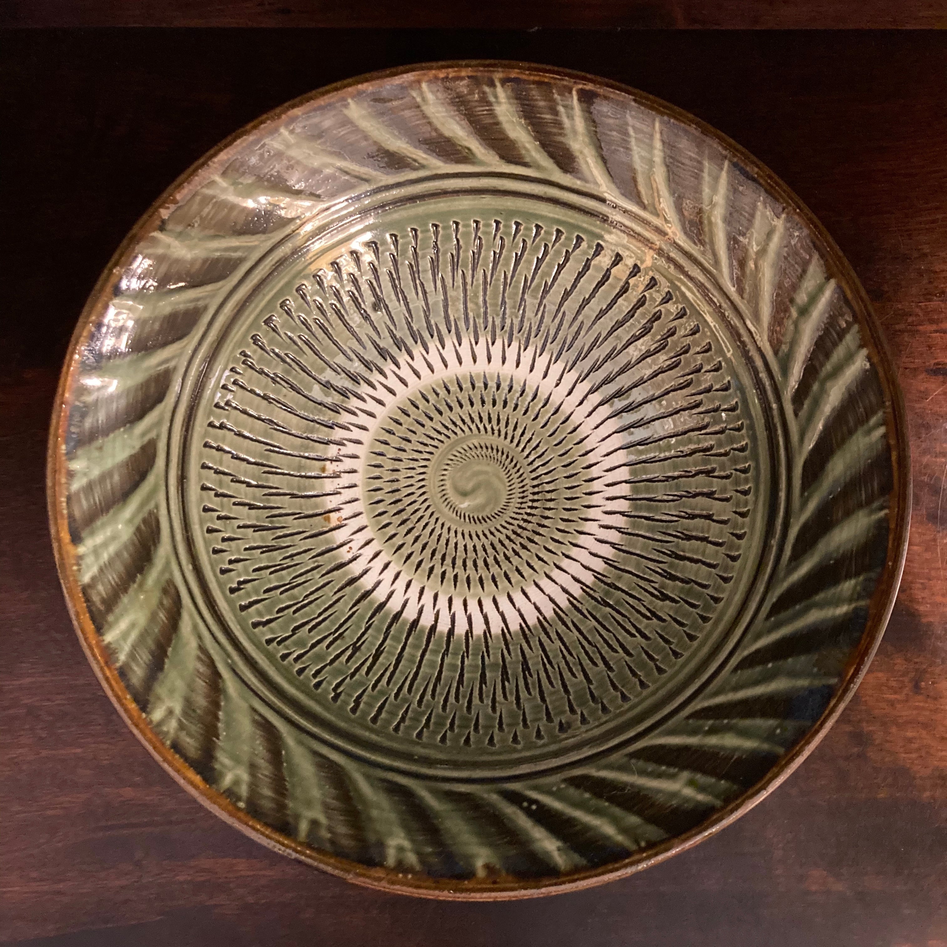 小鹿田焼を代表する技法、刷毛目と飛びカンナがどちらも施されています。煮物などたっぷり盛り付けるのにちょうどよいサイズです。