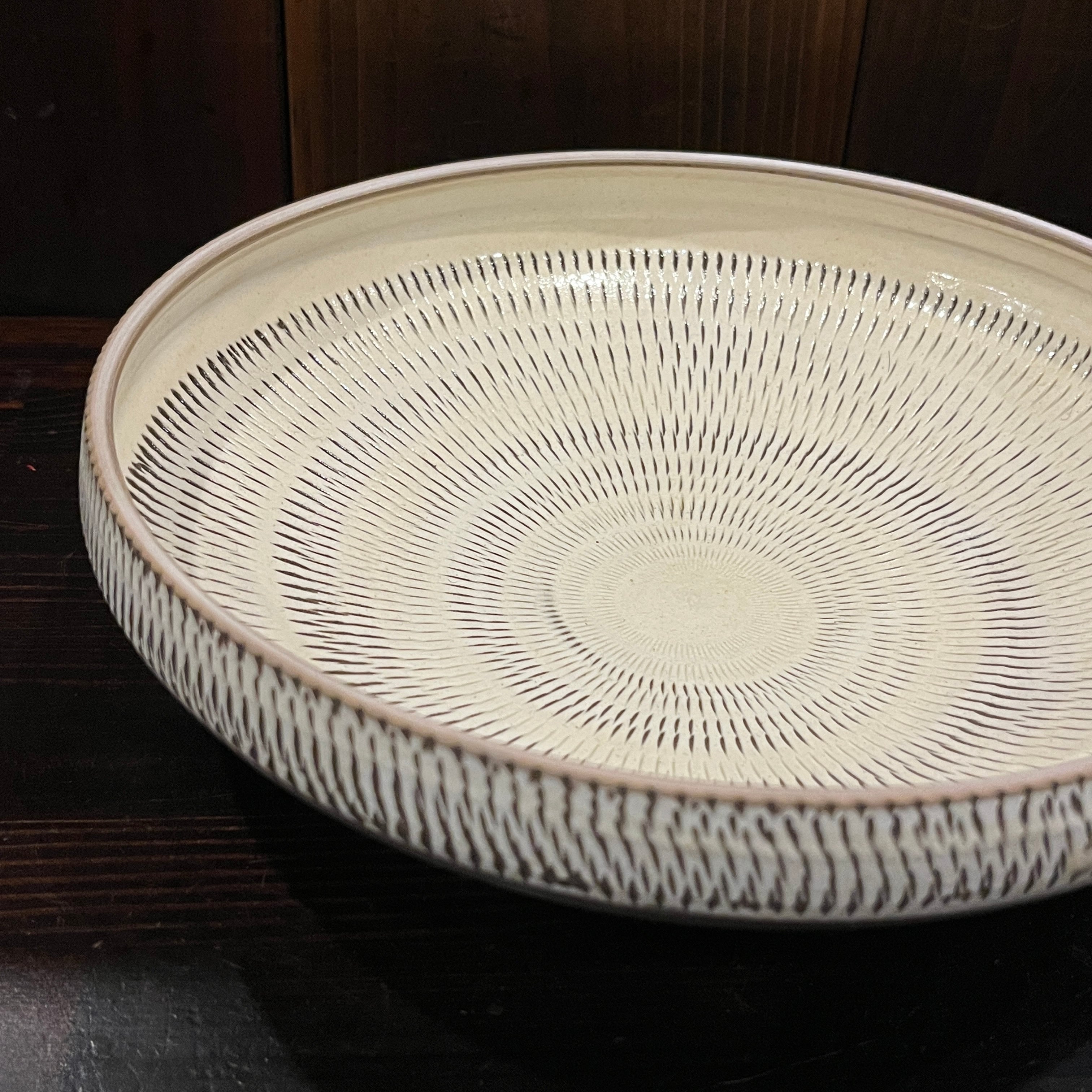 シンプルで美しい、小鹿田焼らしいうつわです。煮物やサラダを盛ったり、菓子鉢として使ったりと、用途の広さも魅力です。